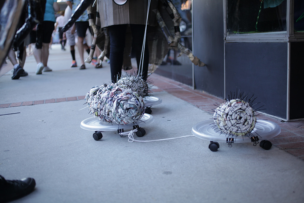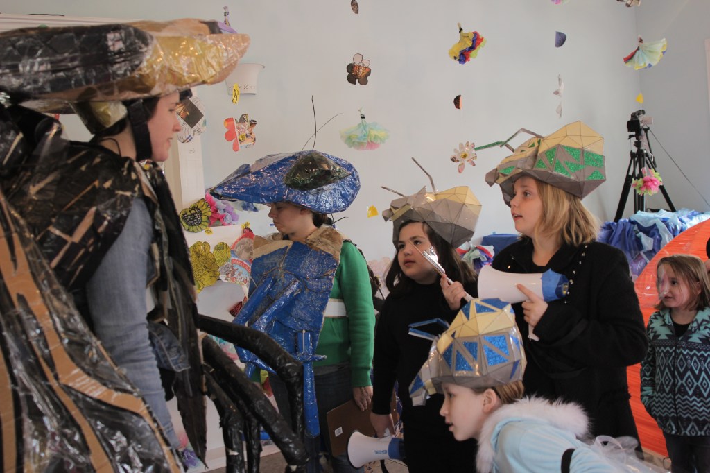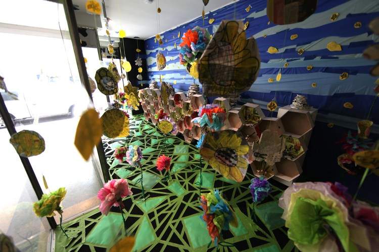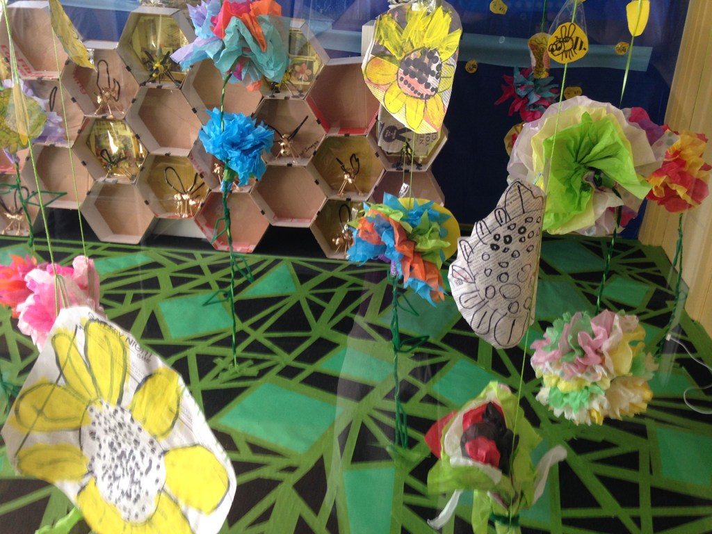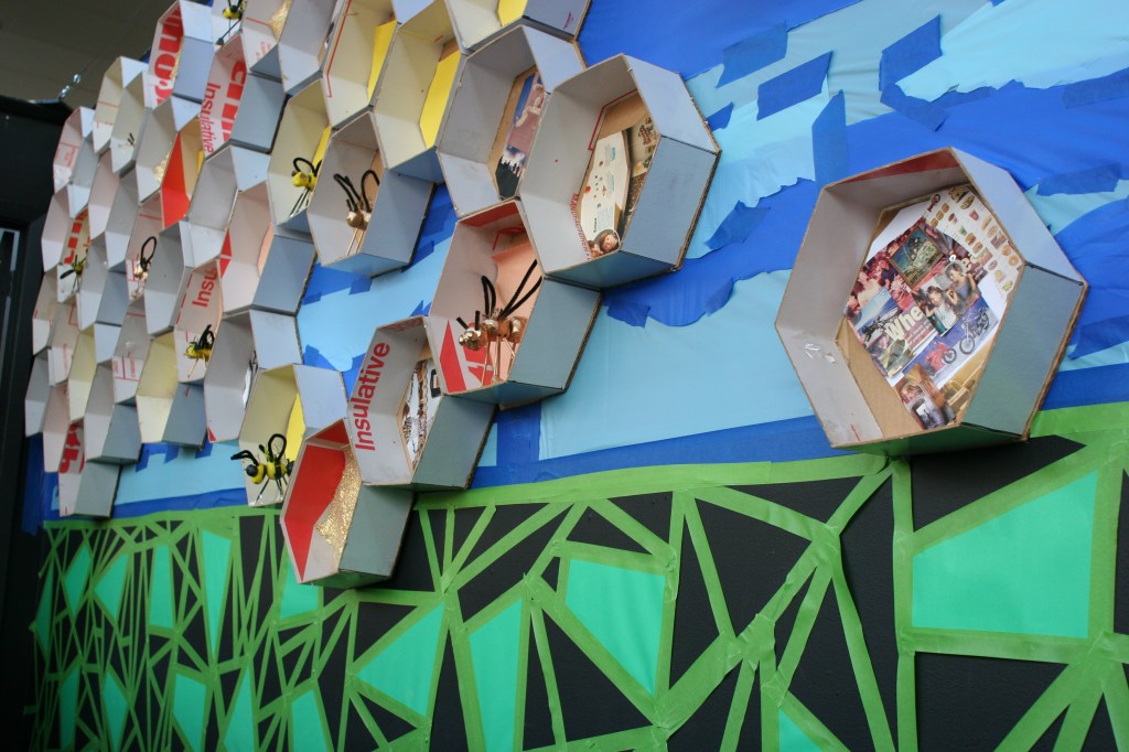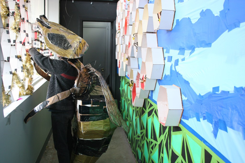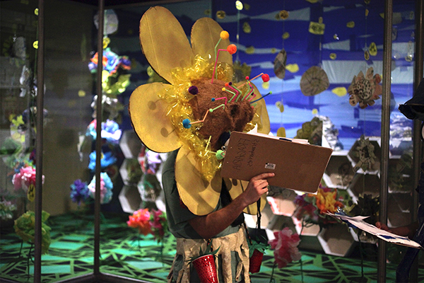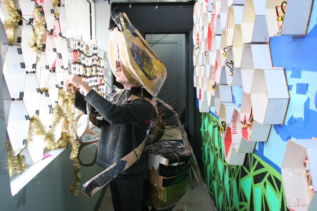 Workshops included those making bees of clay, printmaking and collaging bees and flowers, weaving beehives from recycled newspapers, interior decoration for contemporary bee apartments complexes, collaborative installation, and performing bee.