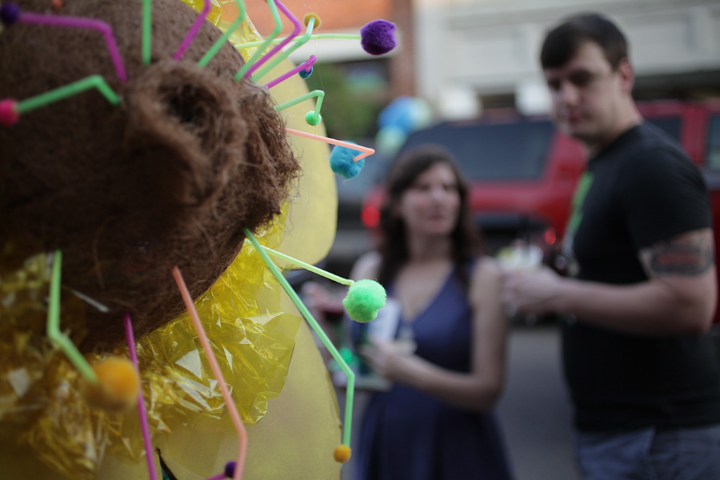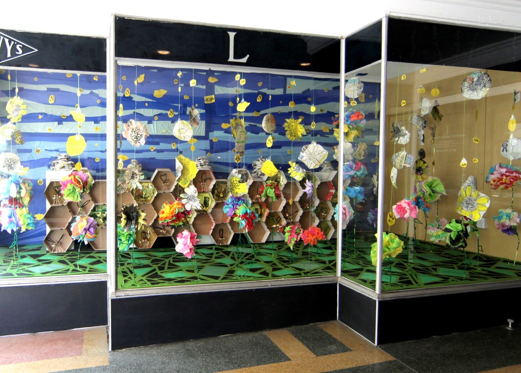 For the Feast of Flowers project, and often assisted by UWF students, I taught several workshops. In terms of content, each workshop focused on the importance of bees to the Tangipahoa Parish (The parish is, along with Oxnard, CA and Plant City, FL, among the top three strawberry producing areas in the United States). The workshops discussed the consequent urgent problem of Colony Collapse Disorder (CCD), and students created art that focused on bee anatomy, bee and strawberry science, and responded to the CCD issue.