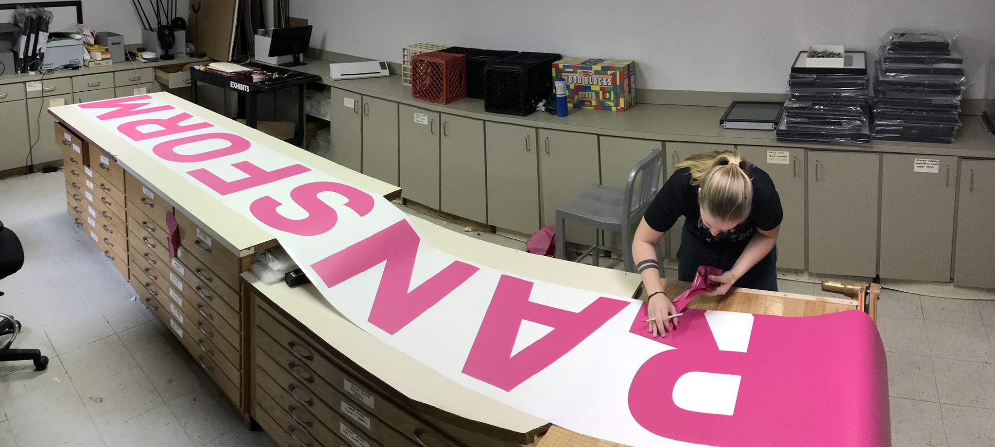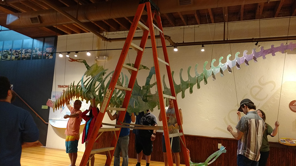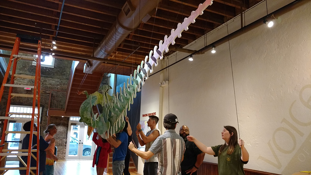 - Margo Crane: Dinosaur with Images of the Graduating Class Preparing the Exhibition